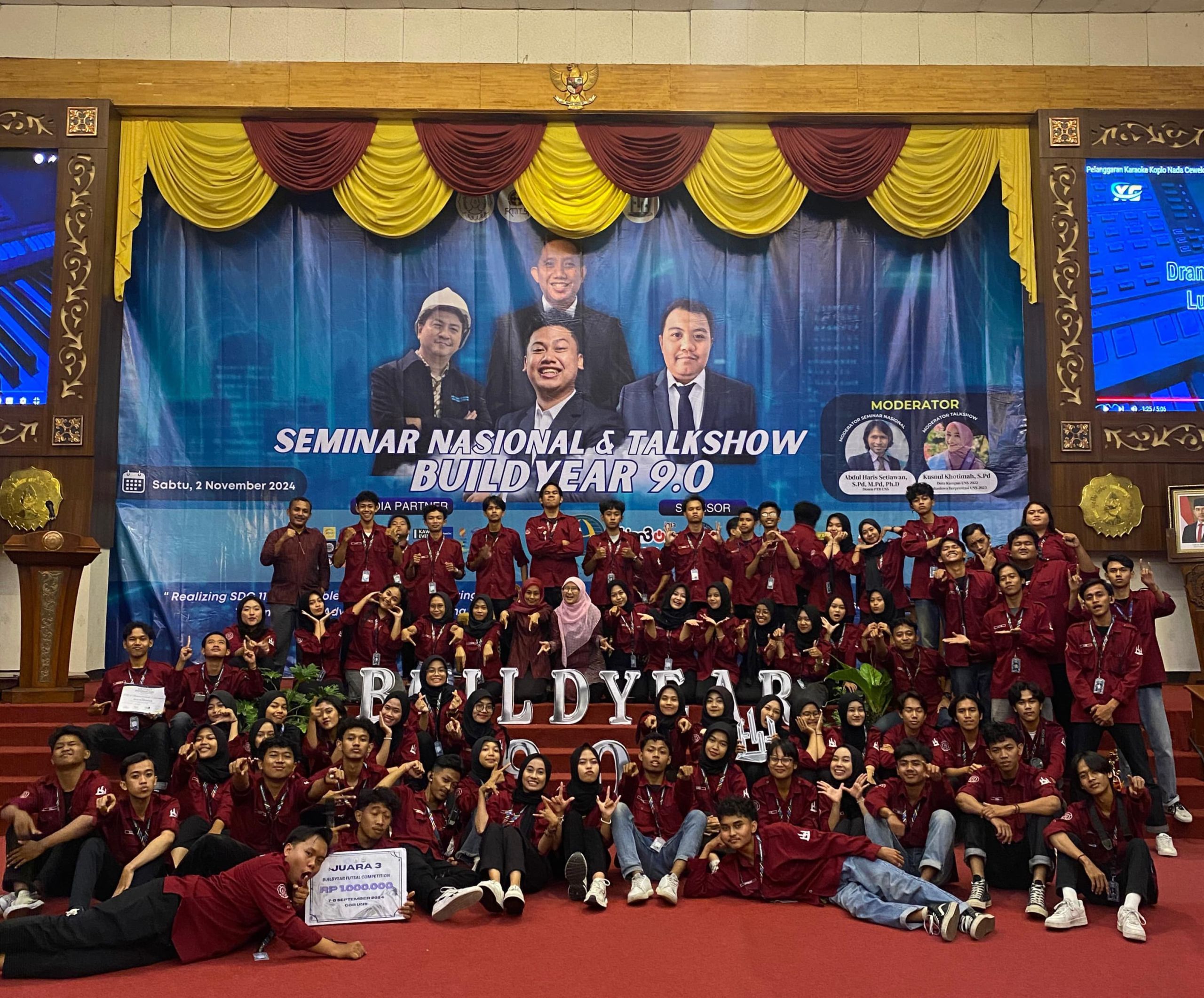 Surakarta, 22 November 2024 – Rangkaian kegiatan Buildyear 9.0 yang mengusung tema “Innovation and Action to Create Your Passion” telah sukses dilaksanakan, menghadirkan serangkaian lomba yang melibatkan pelajar dari berbagai sekolah di wilayah Indonesia. Adapun Seminar Nasional dan Talkshow yang diikuti oleh berbagai khalayak umum.